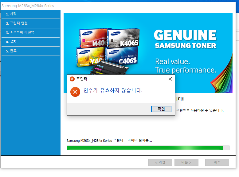 프린터 설치시 " 인수가 유효하지 않습니다."